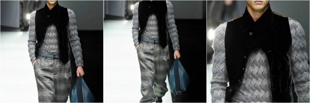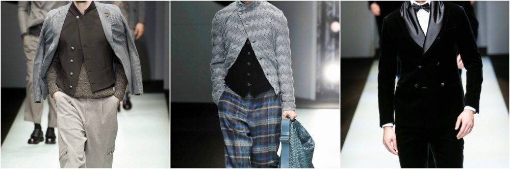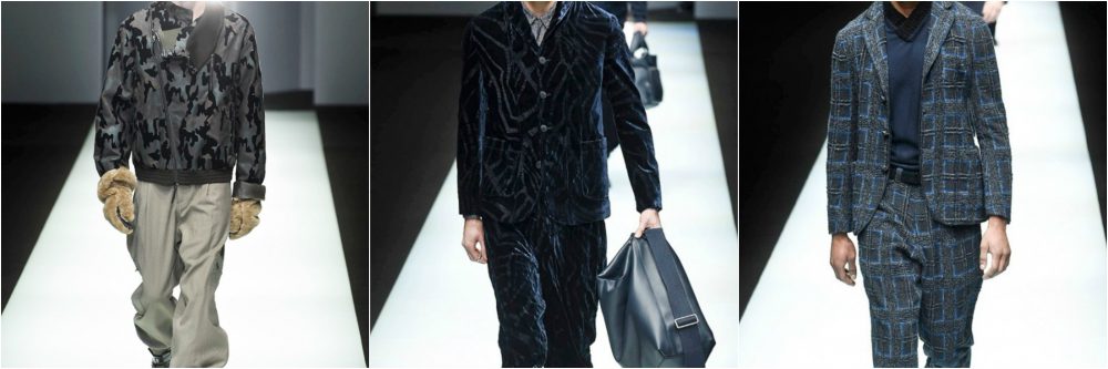 eleganza rilassata per la nuova collezione autunno-inverno 2018/19 firmata Giorgio Armani, nella quale il velluto, che secondo Armani è “il più bel tessuto del mondo”, la fa da padrone: sui capi da giorno come per quelli da sera, su pantaloni, giacche e persino nei nuovi doppiopetto con i revers a lancia, che sottolineano la forza di spalle e vita. “La struttura del velluto- spiega ancora Armani– capta la luce in maniera particolare, se gli metti vicino un tessuto di lana nera al confronto sembra morto. Il velluto ha una capacità magica di trasmettere emozioni e non a caso ha una storia che parte da Giulietta e Romeo. Per me è il tessuto principe”. Il principio della collezione è dare un tocco elegante all’abbigliamento casual e un tocco sportivo ai capi eleganti da sera. Cosi ai pantaloni di velluto, che sono cargo o da jogging, si abbinano le giacche di maglia o i pull con motivi a rilievo, o ancora, i bomber dal collo montante. I cappotti sono lunghi, in montone o in pelliccia ecologica, mentre per la sera ritroviamo lo smoking in velluto con collo a scialle in raso, ma anche quello speculare, in satin con revers in velluto. Il mood è morbido, comodo, naturale e aggraziato, frutto di una ricerca di forme e abbinamenti. I colori sono molto scuri, soprattutto grigio e nero, accesi qua e là da pennellate di smeraldo o di rubino-
