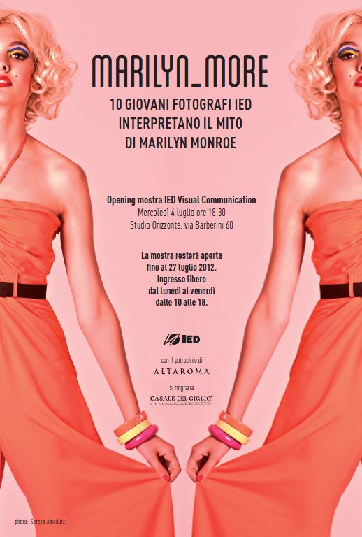 Il 5 agosto 1962 a Los Angeles, Marylin Monroe si tolse la vita con una letale dose di barbiturici. Esattamente 50 anni fa moriva la diva e nasceva il mito intramontabile di Marylin, la bionda per antonomasia che ha rappresentato un’epoca e uno stile. La sua magia ancora attira su di sè l’attenzione mediatica: il 4 luglio presso lo Studio Orizzonte sito in Via Barberini 60 a Roma sarà inaugurata la mostra fotografica MARILYN_MORE, inserita negli eventi Extra del calendario di Altaroma. Dieci studenti dell’Istituto Europeo di Design di Roma diplomati in Fotografia interpretano il mito attraverso trenta immagini di moda. Coordinati dal noto fotografo di moda Antonio Barrella, sono stati chiamati a sperimentare nuovi linguaggi, con rivisitazioni personali evocative del personaggio di Marilyn Monroe. Ecco un’anticipazione sulle scelte adottate dagli studenti dello IED per immortalare la celebre Norma Jeane: Serena Amaduzzi sceglie immagini fluo, dai colori potentemente marcati per una Marilyn pop, giocosa, caratterizzata da una forte personalità. Robson Avertuo si ispira ai grandi fotografi di moda Avedon, Penn, Newton, Olaf, Meisel, Demarchelier e la sua fotografia esalta gli abiti, gli accessori e il corpo della protagonista dello scatto. Federica Rossi D’Arrigo ambienta la sua Marilyn in una dimensione domestica, circondata da oggetti vintage immortalata negli anni ‘50 tra i suoi abiti, i suoi profumi e gioielli. Il lavoro di Jiulia Bussi rimanda ad un concetto di moda che si fa arte e si rinnova., utilizzando un modello maschile che trasforma il mondo di Marilyn in una dimensione ambigua ed estrema. Patrizia Fusi riproduce il suo immaginario onirico con un particolare studio della luce che si riflette sul corpo e sugli abiti. Paco Matteo Li Calzi stravolge la figura del mito che tutti conosciamo e presenta una Marilyn del XXI secolo: la nuova Marilyn è una ragazza asiatica. Sara Pellegrino lavora su ambientazioni eteree: la sua Marilyn affiora appena nella superfice dell’immagine, per poi svanire gradatamente negli scatti successivi lasciandoci solamente il suo abito. Emilia Setti opta per scelte estetiche dettate dalla semplicità e dal colore ricordando l’arte di Miles Aldridge. I riferimenti culturali di Ilaria Scarpa sono Tim Walker e Paolo Roversi, due tra i fotografi di moda che hanno influito sul suo stile personale: gli scatti surreali e onirici sono quelli a cui si ispira maggiormente riproponendoli anche nel suo lavoro. Francesco Trombettirappresenta l’oppressione dei canoni estetici imposti alla donna, raffigurati nel loro insieme dall’immagine di Marilyn ispirandosi così ai ritratti all’angolo realizzati da Irving Penn: le sue foto propongono un fondale costante, un format dentro il quale i soggetti si muovono oppressi. E’ inevitabile associare il mito di Marilyn alla moda in quanto è un soggetto rivisitato più volte, interpretato da artisti (come non ricordare Andy Warhol), film‐maker e fotografi. In particolare, per il fotografo rappresenta un passaggio quasi obbligato considerando il vasto repertorio iconografico che ha contribuito negli ultimi cinquanta anni alla creazione del personaggio sia come icona che sex‐symbol. Marilyn ancora oggi ci fa innamorare e rappresenta il soggetto più ambito sia per il grande pubblico che per i creativi dell’immagine, per ciò che ha rappresentato in quanto a bellezza, eleganza e stile. Inoltre la mostra ospiterà anche la proiezione di Filmarilyn, realizzato da Paolo Gioli nel 1992, un film muto girato in 16 mm., in bianco e nero. L’opera si basa su una serie di fotografie scattate da Bert Stern per un servizio di moda per la rivista Vogue sei settimane prima della morte di Marilyn Monroe, che Gioli ha animato producendo un’illusione di movimento.  La mostra fotografica MARILYN_MORE resterà aperta fino al 27 luglio 2012. (Ingresso libero dal lunedì al venerdì dalle 10 alle 18)