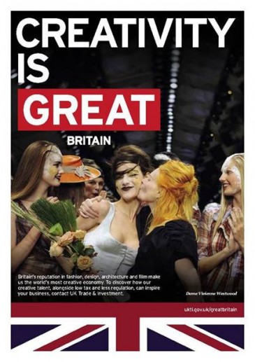 L’immagine della stilista britannica Vienne Westwood è stata scelta per rappresentare la categoria Creativity Great, nella campagna governativa per promuovere tutte le cose “Belle” made in Gran Bretagna.