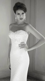 Un abito da sposa da sogno, stile anni ’30, realizzato in pizzo chantilly e tulle setato, letteralmente tempestato da perle iridescenti, cristalli e pietre preziose di varie dimensioni, che dal busto degradano verso la coda “inondando” lo strascico.