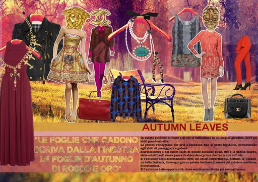 In questo autunno di rosso e di oro ci infiltriamo in un magico giardino, dove gli abiti prendono vita. Le grucce volteggiano per aria e scendono fino al prato ingiallito, permettendo agli abiti di passeggiare e godere dell’atmosfera e dei colori caldi di questo autunno 2013. Oro è la parola chiave, siate scintillanti senza paura di abbondare prima che l’autunno voli via.