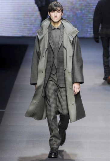 Un’eleganza sempre costante, raffinata e mai ostentata, quella della griffe Zegna, che propone abiti a giacca con linee semplici dall’aspetto a tratti vintage abbinati a cappotti e piumini oversize caratterizzati da colli e baveri importanti. Lane fini, cashmere nobili e pregiata vicuna, si portano con covers sportivi, nylon e sete giapponesi, lane miste al cordura o al kevlar.