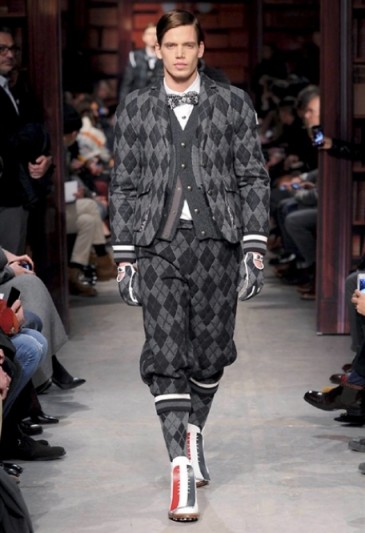 Segni Particolari: In occasione della Milano Fashion Week, per la presentazione della collezione FW 14/15, Moncler Gamme Bleu ha portato in passerella uomini e donne. Nella sua collezione, il brand francese riporta verso i motivi ed i pattern tradizionali della moda richiamando il famoso motivo a losanghe, reinterpretato con grande originalità.