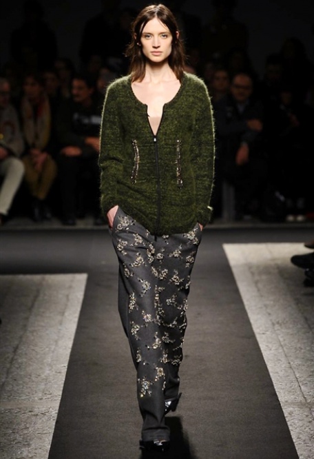 Segni particolari: Alessandro Dell’Acqua propone a Milano Fashion Week, una collezione dominata dal contrasto e dal mix and match. Si può essere austeri a meta’ e romantici dall’altra parte con le stampe flowers; si può essere impenetrabili con spessi maglioncini a coste ma nel contempo mostrare una sensuale trasparenza in svolazzante chiffon. Il segreto sta anche nel portare tutto un po’ over, di sovrapporre texture diverse, sperimentare con le forme e dimenticare le sovrastrutture della silhouette femminile per come la conosciamo. N.21 esplora un diverso tipo di sensualità’, quella più bohémienne e libera, che celebra il lato maschile di ogni donna.