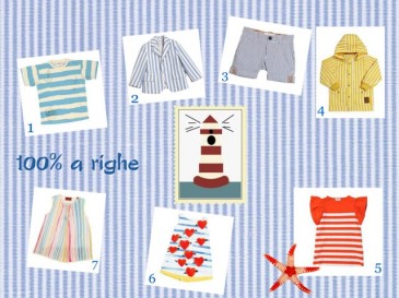 100% a righe è sinonimo di mare, del blu intenso e delle sue sfumature. Per noi mamme basta una borsa di paglia, quelle enormi, short rigati e t-shirt, per sentirsi pronte per il mare. Anche per cerimonie i completi giacca e pantalone a righe per it boys, hanno un sapore giocoso e fresco, mentre per le it girl abitini a righe con maniche svolazzanti. Le righe sono infinite, come le proposte degli stilisti che ogni anno per le linee kids lanciano capi originali e freschi.