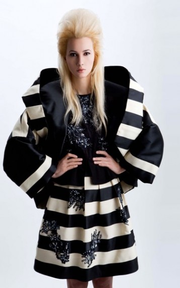 “Direi che ho una passione smodata per il “non colore”: bianco e nero, a cui spesso mi piace aggiungere il rosso. In verità, non amo né i colori né le stampe, tanto da non indossarli mai, eppure nelle mie collezioni sento sempre il bisogno di inserirli e adoro farlo, forse, proprio per questo motivo.”