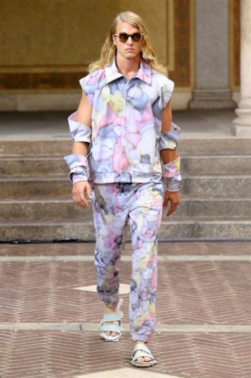 Segni particolari: Julian Zigerli il Re del coordinato. Outfit che sembrano fumetti e viaggi fantasiosi. Lo stilista svizzero non solo coordina i pezzi sopra e sotto ma anche gli accessori, tanto da non farci distinguere in alcuni casi la massa colorata che cammina sulla passerella. L’uomo Zigerli per la collezione estate/primavera 2015 è un uomo che ama la comodità senza rinunciare allo stile. Julian come sempre stupisce per la straordinaria capacità nell’unire materiali tecnici a forme morbide, pratiche dai colori stravaganti.