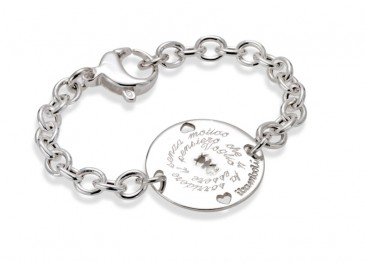 50 caratteri (spazi compresi) danno vita a pensieri e frasi originali dedicate a chi amiamo di più. E per chi vuole uno spunto o una fonte d’ispirazione sono disponibili una serie di frasi scelte personalmente dalla designer Roberta Parilli. Una volta scelta la frase i maestri orafi, con la loro grande abilità, incideranno a laser la frase scelta dando quel tocco di unicità al vostro gioiello.