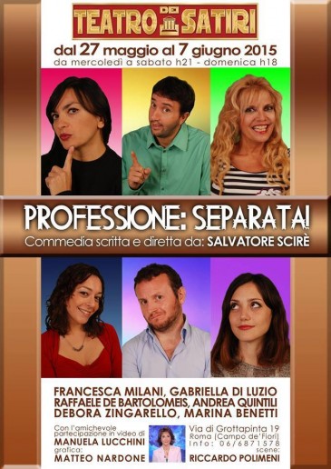 Da mercoledì 27 maggio a domenica 7 giugno, andrà in scena al Teatro dei Satiri la commedia Professione: Separata! scritta e diretta da Salvatore Scirè. Un cast eccezionale e una storia ricca di “saggezza” fanno di questa commedia un appuntamento imperdibile.