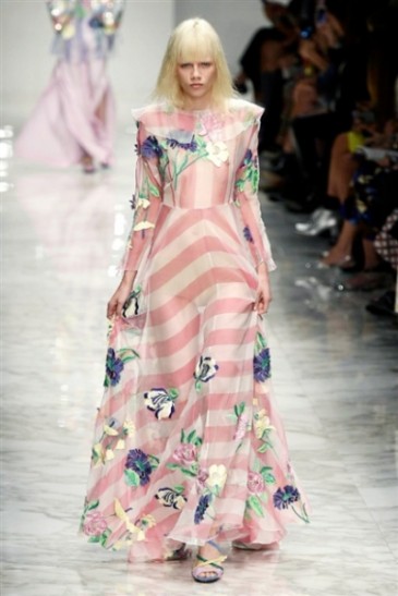Segni Particolari: La terza giornata della Milano Fashion Week, si apre con la sfilata di Blumarine. In passerella, sfila una collezione Spring/Summer 2016 molto romantica e femminile, decisamente in linea con la tradizione del brand. Capi semplici, eleganti, raffinati. Abiti leggeri e decorati con righe verticali trasparenti, dai toni pastello, incrociate per formare motivi geometrici. Tailleur illuminati da luminosi strass e tessuti metallizzati, spolverini e trench color sabbia o pastello. Sul finale Blumarine, emerge l’ispirazione orientale, con abiti simili a kimono, reinterpretati in chiave minimal. Anna Molinari è ancora una volta promossa a pieni voti!
