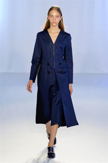 Alcuni di questi capi sembrano “non finiti”, come i bozzetti su carta delle sarte per creare un effetto 3D. Pezzi speciali antipioggia sono ponci e k-way in lucido pvc setato laccato. Una collezione che combina l’alta sartoria maschile a una couture romantica.