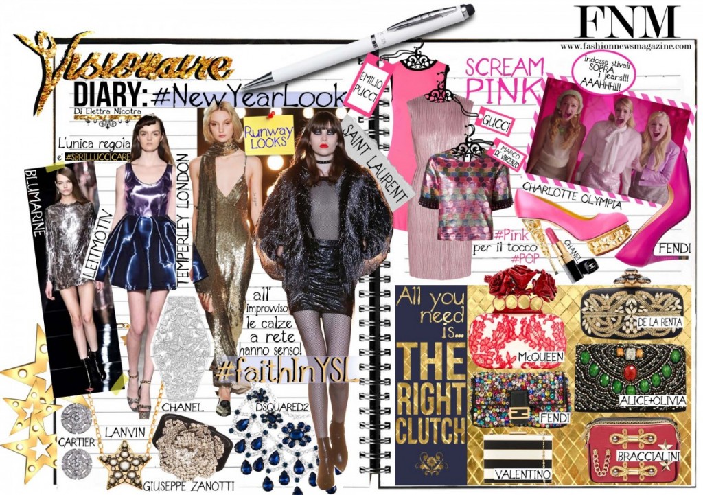 Al gioco di volumi il compito di ricamare le nostre silhouette, alle collane importanti le decorazioni; i diamanti si occupano di irradiare la luce giusta; mentre alle clutches lasciamo il piacere di raccontare qualcosa di noi. Le forti e concise con le righe (Valentino), le romantiche scelgono le rose (Alexander McQueen), le bohochic accostano pietre (Alice And Olivia), quelle sbarazzine giocano di borchie multicolor (Fendi), chi ama il lusso classico predilige un oro sfarzoso (Oscar De La Renta) ed ancora donne guerriere con stelle e alamari (Braccialini).