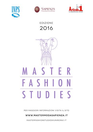 Il Master in Fashion Studies è un Master universitario di primo livello a frequenza part-time e durata annuale, organizzato dalla Facoltà di Lettere dell’Università di Roma Sapienza, con titolo legalmente riconosciuto in Italia e all’estero. Offre un percorso di studio della moda a 360°, spaziando tra disparate discipline ad essa collegate, dalla sociologia al giornalismo ed editoria, passando per il marketing, la semiotica e le arti visive. Il percorso di studi è composto da lezioni frontali, laboratori e stage presso aziende del settore già affermate. Quindi, non solo parte teorica, ma anche tanta pratica da poter sfruttare nel mercato del lavoro nel settore della moda e dei beni di lusso. Un settore, questo, caratterizzato dall’elevato tasso di competitività, per questo il Master si prefigge di preparare al meglio chi possiede già una cultura di base in quest’ambito, offrendo sbocchi occupazionali nell’editoria di moda, negli uffici stampa, nelle agenzie di pubbliche relazioni, nell’organizzazione eventi e nelle istituzioni museali legate al costume e alla moda.