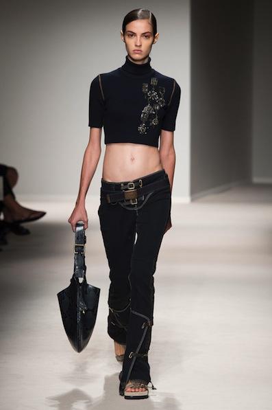 Accessori: Shopping bag dal fascino artigianale in vitello diventano sacche militari, nuove hobo si sposano con moderne cartuccere. Ai piedi sandali gladiatore alla caviglia e fin sul ginocchio.