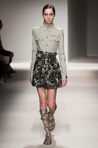 Accessori: Shopping bag dal fascino artigianale in vitello diventano sacche militari, nuove hobo si sposano con moderne cartuccere. Ai piedi sandali gladiatore alla caviglia e fin sul ginocchio.