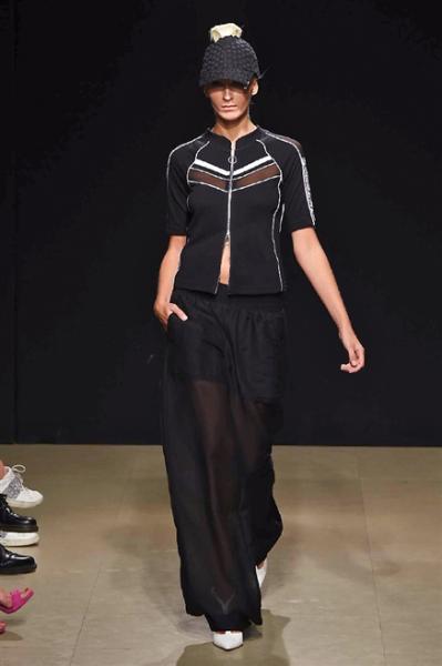 Segni particolari: La collezione primavera estate 2017 Grinko apre la settimana della moda a Milano con  un mélange di atmosfere bohémienne della new York anni ’60, degli eccessi di Milano e Parigi anni ’80 e del minimalismo della Londra anni ’90. Cotone, lino e seta si sposano perfettamente con pantaloni-tuta e top super fit. Organze di seta su maniche importanti e gonne, moderni patch plastici trasparenti ornano i capi, rendendoli eleganti. Le frange bianche o nere applicate a mini dress, maglie e borse regalano fluidità e movimento. A dare un tocco di colore un long dress lavanda con scollatura a V, profondo spacco centrale e allacciatura al collo.