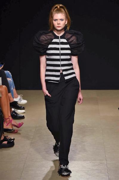 Segni particolari: La collezione primavera estate 2017 Grinko apre la settimana della moda a Milano con  un mélange di atmosfere bohémienne della new York anni ’60, degli eccessi di Milano e Parigi anni ’80 e del minimalismo della Londra anni ’90. Cotone, lino e seta si sposano perfettamente con pantaloni-tuta e top super fit. Organze di seta su maniche importanti e gonne, moderni patch plastici trasparenti ornano i capi, rendendoli eleganti. Le frange bianche o nere applicate a mini dress, maglie e borse regalano fluidità e movimento. A dare un tocco di colore un long dress lavanda con scollatura a V, profondo spacco centrale e allacciatura al collo.