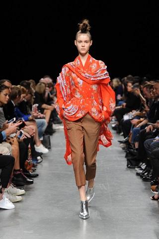 In quasi tutte le creazioni prevale la vita alta, con spiccata rilevanza del torace che va ad ingrandirsi con toni esagerati verso i fianchi dando un’immagine di evanescenza e fluidità. Tessuti e lavorazioni si alternano in intarsi, plissé o giochi di rovesci che delineano fantasie e immagini di leggerezza e perenne movimento. Oltre gli abiti, figurano bluse svolazzanti, camicie e fiocchi insieme a giacche, tailleur e abbondanza di sottovesti plissé. Accattivanti le numerose fantasie dei tessuti che offrono “spettacoli” di stampe o a pois diversamente strutturati, in varie forme o geometrie, a ricordare i Cookies o i Flakes.