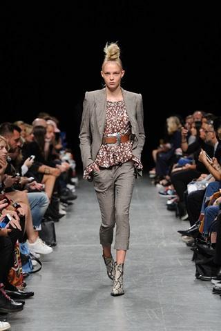 In quasi tutte le creazioni prevale la vita alta, con spiccata rilevanza del torace che va ad ingrandirsi con toni esagerati verso i fianchi dando un’immagine di evanescenza e fluidità. Tessuti e lavorazioni si alternano in intarsi, plissé o giochi di rovesci che delineano fantasie e immagini di leggerezza e perenne movimento. Oltre gli abiti, figurano bluse svolazzanti, camicie e fiocchi insieme a giacche, tailleur e abbondanza di sottovesti plissé. Accattivanti le numerose fantasie dei tessuti che offrono “spettacoli” di stampe o a pois diversamente strutturati, in varie forme o geometrie, a ricordare i Cookies o i Flakes.