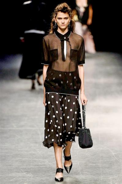 Segni particolari: La collezione Anteprima S/S 2017 fonde grinta e determinazione con dolcezza e femminilità. Pois pois e ancora pois in bianco e nero, bianco e rosso, blu e nero, blu e bianco, piccoli e grandi su gonne morbide e scivolate, in trasparenza su camicette in morbida seta, sulle borse e sulle pochette. Righe verticali si sposano alla perfezione con stampe floreali. La maglieria sportiva è rivisitata con spacchi laterali e si accosta ad abiti eleganti, giacche dal taglio maschile con aria risoluta e pantaloni arricciati in vita. Generosi volumi e sete svolazzanti accarezzano il corpo senza costringerlo. Forza è femminilità. Forza è anticonformismo.