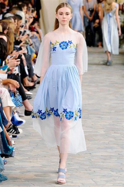 Segni particolari: Una ninfa dei nostri giorni, è così che Luisa Beccaria immagina la donna: sensuale, dolce, fluttuante. La collezione S/S 2017 presenta capi in lino, in cotone, in organza. La parola d’ordine è leggerezza. Come le onde del mare ora agitate ora calme, come la natura decisa e morbida allo stesso tempo, le modelle eteree sembrano appena uscite da un quadro di Monet, sfilando come se stessero fendendo l’acqua. Drop pants e pantaloni palazzo si susseguono con leggiadria trasmettendo sensualità. Abiti svasati sembrano riproporre il gorgoglio dell’acqua: fluidi accarezzano morbidamente il corpo lasciandolo intravedere in trasparenza. Per la sera abiti scivolati, gonne ampie e tuniche ricamate con fiori d’allium regalano un’atmosfera incantata.
