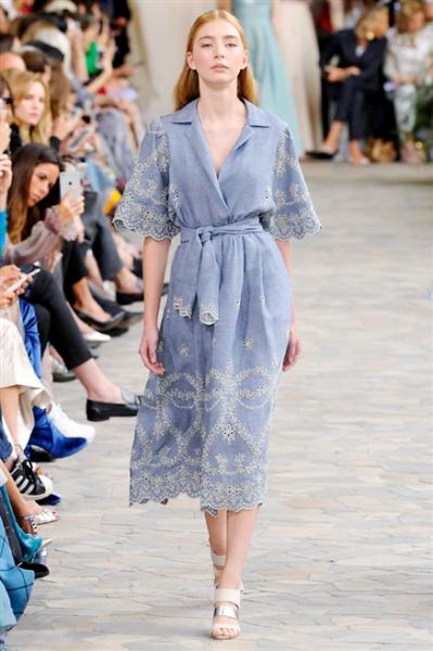 Segni particolari: Una ninfa dei nostri giorni, è così che Luisa Beccaria immagina la donna: sensuale, dolce, fluttuante. La collezione S/S 2017 presenta capi in lino, in cotone, in organza. La parola d’ordine è leggerezza. Come le onde del mare ora agitate ora calme, come la natura decisa e morbida allo stesso tempo, le modelle eteree sembrano appena uscite da un quadro di Monet, sfilando come se stessero fendendo l’acqua. Drop pants e pantaloni palazzo si susseguono con leggiadria trasmettendo sensualità. Abiti svasati sembrano riproporre il gorgoglio dell’acqua: fluidi accarezzano morbidamente il corpo lasciandolo intravedere in trasparenza. Per la sera abiti scivolati, gonne ampie e tuniche ricamate con fiori d’allium regalano un’atmosfera incantata.