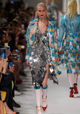 Segni particolari: Per la primavera-estate 2017 Daizy Shely si diverte a giocare con gli specchi. Paillettes specchiate ricoprono abiti fluidi. Gli abiti di organza diventano delle tele decorate con maxi fiori dipinti con gli acquarelli. Ed ancora sfilano look in cotone sangallo dal mood romantico. Opulenza e classicità si fondono in un sapiente gioco di stile. Gonne plissettate dalle accese tonalità metalliche sono abbinate a leggere e trasparenti camice. Volumi over caratterizzano i capispalla.