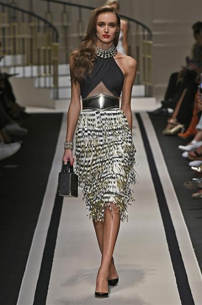 Accessori: Gioielli oversize e tacchi vertiginosi, cinture importanti con catene oro e maxi strass che sottolineano il punto vita. Décolleté, sandali altissimi e clutch laminate.