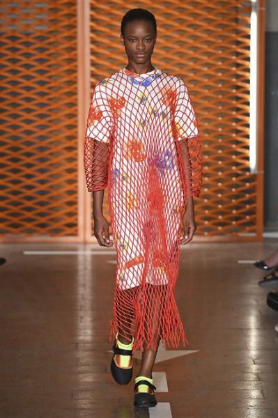 Segni Particolari: In occasione della Milano Fashion Week, Massimo Giorgetti presenta la collezione SS 2017, firmata MSGM, ispirata allo stile college. Una collezione interessante che richiama contaminazioni con elementi mutuati allo sportswear. La classica gonna viene cosparsa da ruches, la camicia maschile presenta maniche allungate ed è attraversata da un maxi jabot. Le maglie sono abbinate a pantaloni ampi tulle, crochet, nylon, cotone, maglia, pizzo. Camicie e gonne ampie sono cosparse da ruches all over.