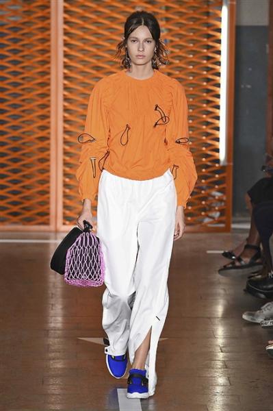 Segni Particolari: In occasione della Milano Fashion Week, Massimo Giorgetti presenta la collezione SS 2017, firmata MSGM, ispirata allo stile college. Una collezione interessante che richiama contaminazioni con elementi mutuati allo sportswear. La classica gonna viene cosparsa da ruches, la camicia maschile presenta maniche allungate ed è attraversata da un maxi jabot. Le maglie sono abbinate a pantaloni ampi tulle, crochet, nylon, cotone, maglia, pizzo. Camicie e gonne ampie sono cosparse da ruches all over.