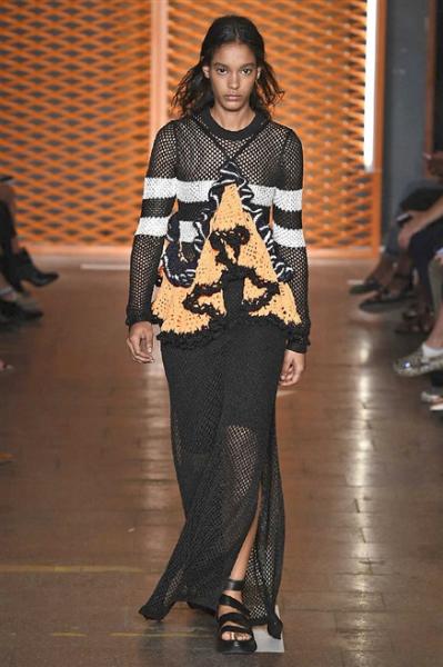 Segni Particolari: In occasione della Milano Fashion Week, Massimo Giorgetti presenta la collezione SS 2017, firmata MSGM, ispirata allo stile college. Una collezione interessante che richiama contaminazioni con elementi mutuati allo sportswear. La classica gonna viene cosparsa da ruches, la camicia maschile presenta maniche allungate ed è attraversata da un maxi jabot. Le maglie sono abbinate a pantaloni ampi tulle, crochet, nylon, cotone, maglia, pizzo. Camicie e gonne ampie sono cosparse da ruches all over.
