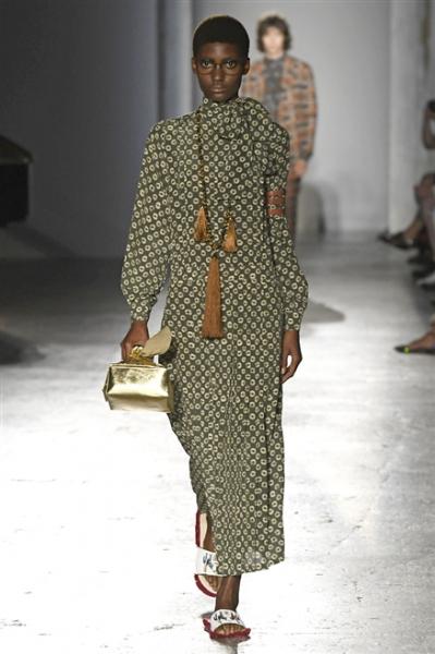 Segni Particolari: Ispirata al tema del calcio, come sport internazionale, che unisce popoli diversi per etnia, cultura e religione, la nuova collezione primavera estate 2017, firmata Stella Jean, è pensata per una donna forte, determinata e gentile. Una moda letteralmente “senza confini”, che trova la sua ispirazione nel caos ordinato dei mercati e delle case da tè di Yangon, dove le sovrapposizioni di “longyi”, vesti tipiche birmane, fonte di ispirazione per look sperimentali dall’esprit borghese. Dall’atmosfera dei ricevimenti diplomatici nel Sud-est asiatico degli anni ’40, fino ad arrivare ad Aung San Suu Kyi (premio Nobel per la pace), simbolo della resistenza pacifica e della promozione delle proprie radici. Nella collezione, Sarong che si sovrappongono agli chemisier dai volumi fluidi diventano perfette divise geek chic, distillati di un cross over culturale. Maglie intarsiate con la fascia da capitano e polo vintage-soccer sono abbinate a gonne iper femminili. Il decorativismo di Préfète Duffaut, pittore della scuola di Saint Soleil, irrompe sulle plissettature metropolitane.