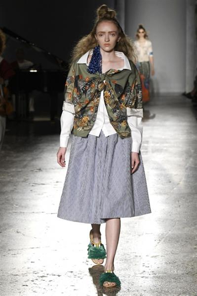 Segni Particolari: Ispirata al tema del calcio, come sport internazionale, che unisce popoli diversi per etnia, cultura e religione, la nuova collezione primavera estate 2017, firmata Stella Jean, è pensata per una donna forte, determinata e gentile. Una moda letteralmente “senza confini”, che trova la sua ispirazione nel caos ordinato dei mercati e delle case da tè di Yangon, dove le sovrapposizioni di “longyi”, vesti tipiche birmane, fonte di ispirazione per look sperimentali dall’esprit borghese. Dall’atmosfera dei ricevimenti diplomatici nel Sud-est asiatico degli anni ’40, fino ad arrivare ad Aung San Suu Kyi (premio Nobel per la pace), simbolo della resistenza pacifica e della promozione delle proprie radici. Nella collezione, Sarong che si sovrappongono agli chemisier dai volumi fluidi diventano perfette divise geek chic, distillati di un cross over culturale. Maglie intarsiate con la fascia da capitano e polo vintage-soccer sono abbinate a gonne iper femminili. Il decorativismo di Préfète Duffaut, pittore della scuola di Saint Soleil, irrompe sulle plissettature metropolitane.