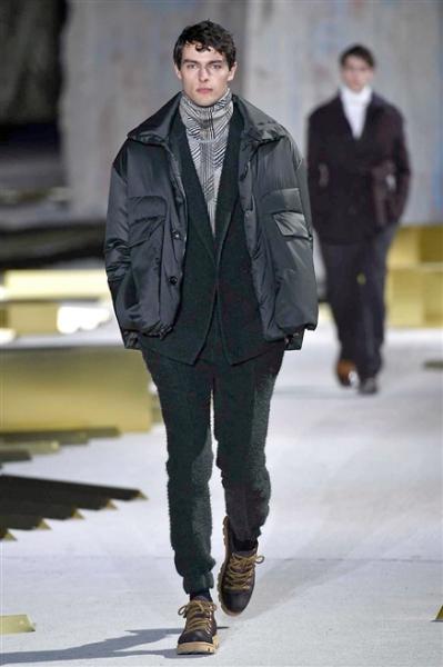 Segni Particolari: Nell’ultima collezione di Alessandro Sartori, il nuovo direttore creativo di Ermenegildo Zegna, che ha dato inizio alla Milano Fashion Week, viene elaborata una linea che unisce le radice artigiane al dinamismo moderno, lasciando che la purezza della sartorialità, tipica del marchio, completi l’intero impegno stilistico. Ogni pezzo è caratterizzato da linee sportswear molto nette: giacche ispirate agli anni ’40, dalle linee e dai dettagli decisi; pantaloni spesso chiusi alla base con elastico, con o senza pants abbinati a maglioni dolcevita o camicie senza collo o spesso con scollo a V. Importanti i dettagli quali la doppia abbottonatura delle giacche, la pelle utilizzata per la confezione di trench e persino grafismi realizzati su telai giapponesi.