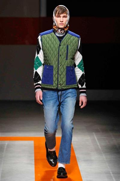 Lo spirito divertente e irriverente di Massimo Giorgetti viene rispettato nella collezione autunno inverno 17/18. Propone, infatti, capi d’abbigliamento giovanili, colorati e comodi. Righe, rombi e quadri su tute, felpe con la zip centrale, capispalla. L’uomo immaginato dello stilista è dinamico e ironico e indossa cappotti dal taglio sartoriale  lunghi fin sotto al ginocchio contrapposti a pantaloni ampi abbinati a cardigan. Maglioni su pantaloni al ginocchio e calzini in evidenza.
