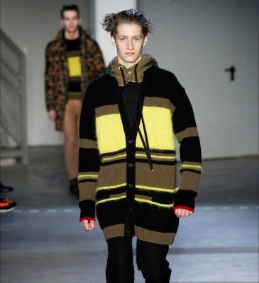 Segni Particolari: Stampe geometriche dal dettaglio multicolor per N°21. Alessandro Dell’Acqua porta sulle passerelle della Milano Fashion Week la versione di un uomo sporty chic e metropolitano che affronta le intemperie avvolto in maxi cardigan con altrettanto maxi righe, pantaloni dal taglio cropped e piumini camouflage. Alla maglieria e ai tagli sartoriali vengono invece accostati i tessuti tecnici, diversi anche gli accostamenti delle fantasie che si alternano reciprocamente l’una con l’altra su una palette decisamente chiara, N°21 punta sul nocciola.