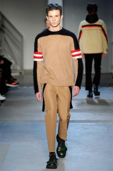 Segni Particolari: Stampe geometriche dal dettaglio multicolor per N°21. Alessandro Dell’Acqua porta sulle passerelle della Milano Fashion Week la versione di un uomo sporty chic e metropolitano che affronta le intemperie avvolto in maxi cardigan con altrettanto maxi righe, pantaloni dal taglio cropped e piumini camouflage. Alla maglieria e ai tagli sartoriali vengono invece accostati i tessuti tecnici, diversi anche gli accostamenti delle fantasie che si alternano reciprocamente l’una con l’altra su una palette decisamente chiara, N°21 punta sul nocciola.