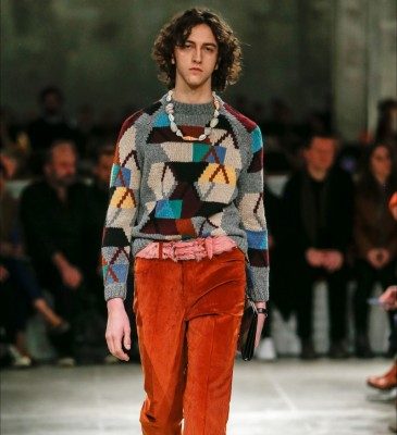 Segni Particolari: L’inverno 17/18 in casa Prada è all’insegna della modestia e della semplicità. Lo ha affermato Miuccia Prada, che vuole togliere alla moda tutti gli orpelli e tornare ad una forma basic, più umile. Mood e shaping ripresi dagli anni settanta, l’epoca della contestazione. E’ questa la rivoluzione secondo Prada, descritta da qualcuno che in quegli anni c’era: pullover multicolor e velluto a coste; un classico tweed dall’armadio del nonno ed un vinile sottobraccio. Trench e pantaloni in pelle non lavorata, color block e camicia abbottonata. Capelli incolti, patchwork sulle giacche: sarà sufficiente per una rivoluzione o si tratta dell’ennesimo parlare di chi non ha fatto altro durante gli “anni ribelli” ma poi si è imborghesito coprendosi gli occhi?
