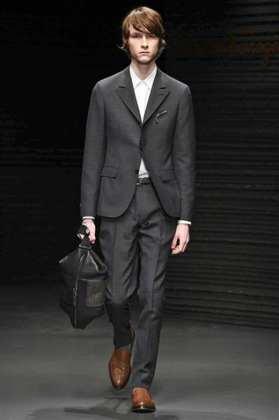 Segni particolari: È la prima collezione Ferragamo firmata Guillaume Meilland. Si apre così un capitolo nuovo nella storia dello stilista: si rileggono i codici dell’abbigliamento maschile in un mix di tessuti, tecniche ed esperienze. Meilland immagina due silhouette: una strutturata e allungata, l’altra più morbida. L’impermeabile è abbinato alla pelle di vitello, al corduroy con texiture gommata, peacoat e filght jacket, maglieria in cashmere. Un nuovo codice di abbigliamento, una nuova era per Ferragamo: una prospettiva globale dell’uomo moderno.