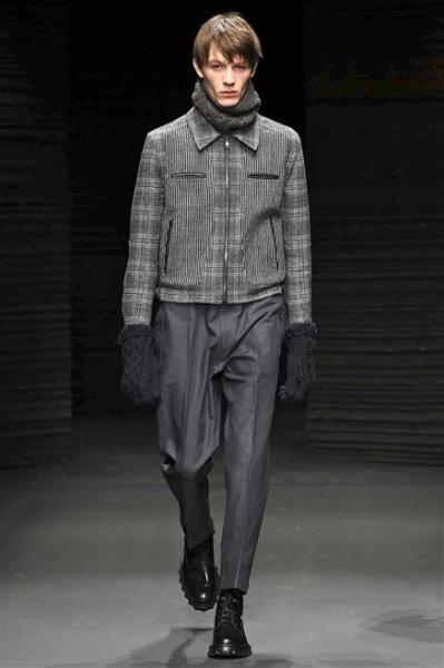 Segni particolari: È la prima collezione Ferragamo firmata Guillaume Meilland. Si apre così un capitolo nuovo nella storia dello stilista: si rileggono i codici dell’abbigliamento maschile in un mix di tessuti, tecniche ed esperienze. Meilland immagina due silhouette: una strutturata e allungata, l’altra più morbida. L’impermeabile è abbinato alla pelle di vitello, al corduroy con texiture gommata, peacoat e filght jacket, maglieria in cashmere. Un nuovo codice di abbigliamento, una nuova era per Ferragamo: una prospettiva globale dell’uomo moderno.