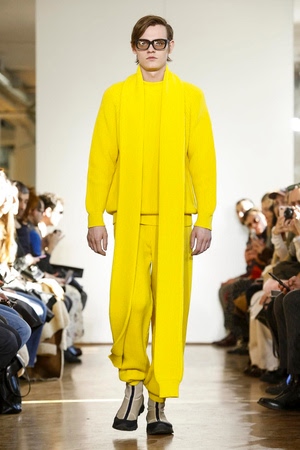 Segni Particolari: Sunnei con il supporto di Camera Nazionale della Moda Italiana presenta sulle passerelle della Fashion Week meneghina una collezione dal mood anni Settanta. Tagli over e loose che uniti alle monocromie sgargianti, danno vita ad un revival del total look, riletto qui in chiave urban ma ricercato. Un uomo che dice sì al colore e alle fantasie del tutto rigate. Sì anche alla pelliccia, proposta sia in versione demi che extra lunga. Sì alle sovrapposizioni e ai motivi check interpretati in una versione puramente coordinata col soprabito da abbinare ai completi dalla giacca blazer o doppiopetto che sia, oppure per spezzare il blocco colore.