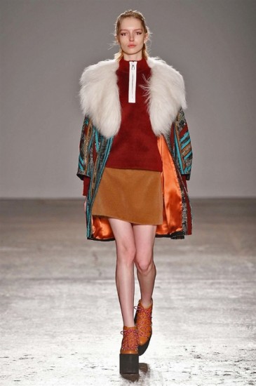 Segni particolari: Tecnologia, innovazione, suggestioni etniche si mescolano in un continuo contrasto tra passato e presente, tradizione e sperimentazione, casual e lusso, creando una linea urbana e contemporanea. Materiali preziosi impreziosiscono capi sportivi, definendo una spiccata femminilità. Protagonisti assoluti? I capi spalla e la maglieria declinati in total look di alpaca dall’effetto 3D. Tessuti diversi si mescolano: cachemire, velluto, pelle, seta, pizzo, jacquard. Il coraggio di osare rimanendo fedeli a se stessi.