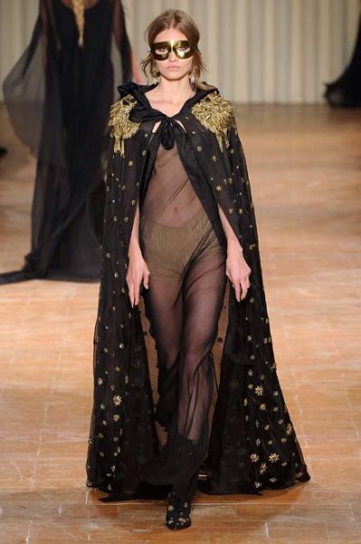 Must Have: Lungo mantello rosso con cappuccio e ricami in oro.