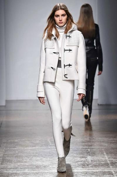 Segni Particolari: La figura femminile viene valorizzata con tocchi bondage e punk. Il classico montgomery vene reinterpretato nella versione varsity, i bustier in pelle si indossano sopra gli abiti a fiori. I tailleur, dal taglio maschile, si fanno preziosi grazie all’applicazione di cristalli e le giacche tartan si portano con i pantaloni da motociclista. Le minigonne si indossano con giacche brevi, i pantaloni sono slim e si abbinano a perfecto con broche e cristalli. In questa collezione, lana, maglia, pelle, cristalli, serpente, seta e cotone, convivono in armonia.