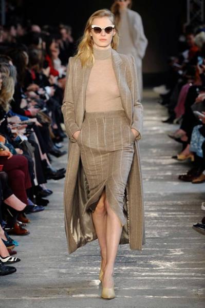 Segni Particolari: Il cappotto, il capo “re” di ogni guardaroba femminile, diventa ibrido. In questa collezione, sposa tessuto e pelliccia di montone, mohair e cashmere, e diventa elegante e superprotettivo. Ampi mantelli, quasi fino a terra, vengono declinati nei colori più classici dal beige al cammello, fino al rosso e al nero. Pantaloni e giacche dal piglio classico-maschile, gonne strette sotto al ginocchio. Il tema di stagione, è infine rappresentato dalla maglieria, a trecce, a coste, indossata con gonne a ruota con plissé, in perfetto stile Ingrid Bergman.