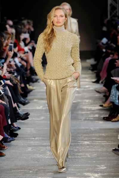 Segni Particolari: Il cappotto, il capo “re” di ogni guardaroba femminile, diventa ibrido. In questa collezione, sposa tessuto e pelliccia di montone, mohair e cashmere, e diventa elegante e superprotettivo. Ampi mantelli, quasi fino a terra, vengono declinati nei colori più classici dal beige al cammello, fino al rosso e al nero. Pantaloni e giacche dal piglio classico-maschile, gonne strette sotto al ginocchio. Il tema di stagione, è infine rappresentato dalla maglieria, a trecce, a coste, indossata con gonne a ruota con plissé, in perfetto stile Ingrid Bergman.