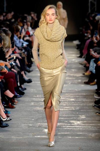 Segni Particolari: Il cappotto, il capo “re” di ogni guardaroba femminile, diventa ibrido. In questa collezione, sposa tessuto e pelliccia di montone, mohair e cashmere, e diventa elegante e superprotettivo. Ampi mantelli, quasi fino a terra, vengono declinati nei colori più classici dal beige al cammello, fino al rosso e al nero. Pantaloni e giacche dal piglio classico-maschile, gonne strette sotto al ginocchio. Il tema di stagione, è infine rappresentato dalla maglieria, a trecce, a coste, indossata con gonne a ruota con plissé, in perfetto stile Ingrid Bergman.