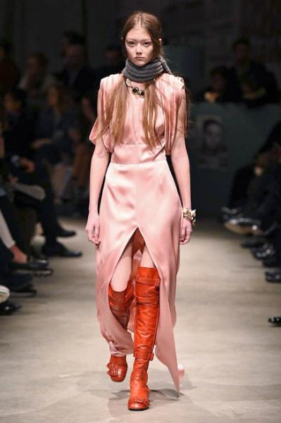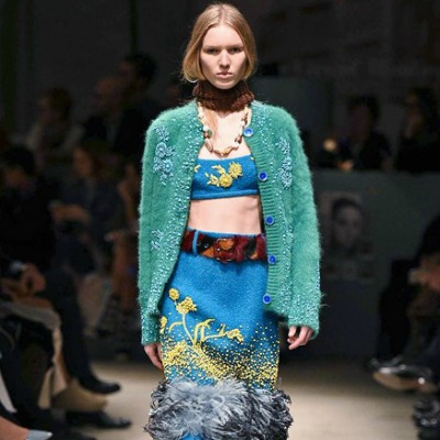 Segni Particolari: Ad una donna determinata, sicura di sé e con uno sguardo agli anni Quaranta è indirizzata la nuova collezione Prada. Una donna che può permettersi gli accostamenti più disparati, che indossa con nonchalance la parte di sopra del bikini durante le stagioni fredde con sopra il cappotto, un cardigan o anche senza, che è femminile e non rinuncia ai colori e all’eleganza. La predilezione è per lo più per le gonne che coprono il ginocchio e sono strette o svasate all’orlo. I capispalla sono lunghi cappotti di pelliccia, di pelle, giacche dalle grandi tasche, cardigan di lana di ispirazione retrò. Grande protagonista è il dettaglio: frange; borchie; inserti di piume che diventano orli di gonne, abiti e cappotti; stampe floreali o serigrafie di icone del cinema di un tempo; ricami di fiori.
