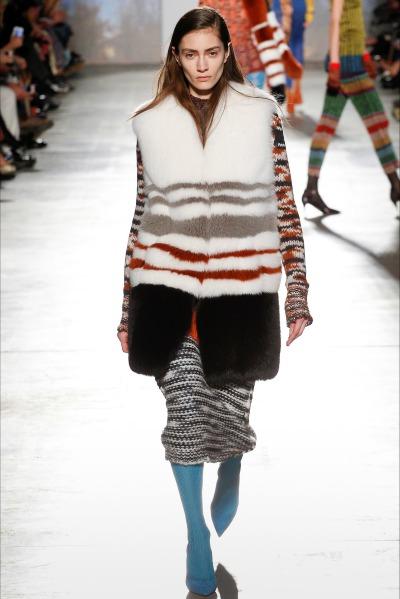 Segni Particolari: Una passerella per sostenere i diritti umani. Angela Missoni sceglie questo momento per lanciare un messaggio di pace, focalizzando l’attenzione sulle rivendicazioni, i diritti delle donne e delle minoranze. “È un momento storico in cui le giornate di marcia non sono una cosa sporadica, un momento in cui tutti quelli che la pensano in questa maniera devono stare uniti. Anche nella moda è bene che usiamo la nostra voce.” A tal proposito, al defilè su ogni posto a sedere, c’era un cappellino rosa in maglia, un modello con le orecchie che tanto ricorda quelli indossati poco più di un mese fa alla marcia rosa che ha riempito le strade di Washington, dopo l’insediamento di Donald Trump alla Casa Bianca. Alle classiche nuance sue proprie, si aggiungono nuovi tagli e più contemporanee linee adatte a ridare forma e vigore alla tradizione; le geometrie dei disegni fanno da sfondo a capi dalle misure oversize o, in contrapposizione, a linee del tutto aderenti. La collezione presenta un trionfo di cardigan e di cappotti dai mille colori e geometrie tra esse intersecate, a formare giochi di luci e colori; abiti nello stesso tono, aderenti alcuni e avvolgenti lungo la silhouette con generosi décolleté; le giacche e i maglioni acquistano forme dalle sfaccettate cromie e dai caleidoscopici disegni; i pantaloni accolgono armoniosamente sia giacche che cardigan completandosi a vicenda.