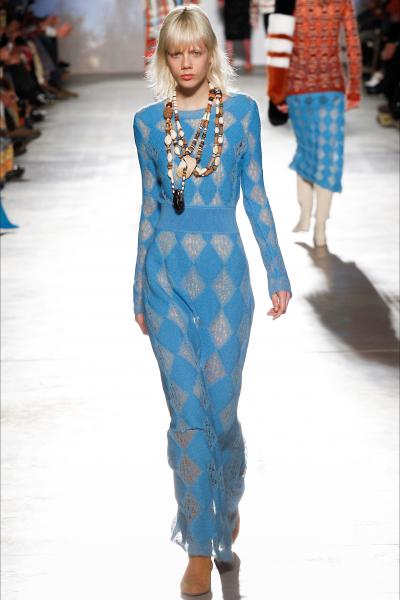 Segni Particolari: Una passerella per sostenere i diritti umani. Angela Missoni sceglie questo momento per lanciare un messaggio di pace, focalizzando l’attenzione sulle rivendicazioni, i diritti delle donne e delle minoranze. “È un momento storico in cui le giornate di marcia non sono una cosa sporadica, un momento in cui tutti quelli che la pensano in questa maniera devono stare uniti. Anche nella moda è bene che usiamo la nostra voce.” A tal proposito, al defilè su ogni posto a sedere, c’era un cappellino rosa in maglia, un modello con le orecchie che tanto ricorda quelli indossati poco più di un mese fa alla marcia rosa che ha riempito le strade di Washington, dopo l’insediamento di Donald Trump alla Casa Bianca. Alle classiche nuance sue proprie, si aggiungono nuovi tagli e più contemporanee linee adatte a ridare forma e vigore alla tradizione; le geometrie dei disegni fanno da sfondo a capi dalle misure oversize o, in contrapposizione, a linee del tutto aderenti. La collezione presenta un trionfo di cardigan e di cappotti dai mille colori e geometrie tra esse intersecate, a formare giochi di luci e colori; abiti nello stesso tono, aderenti alcuni e avvolgenti lungo la silhouette con generosi décolleté; le giacche e i maglioni acquistano forme dalle sfaccettate cromie e dai caleidoscopici disegni; i pantaloni accolgono armoniosamente sia giacche che cardigan completandosi a vicenda.